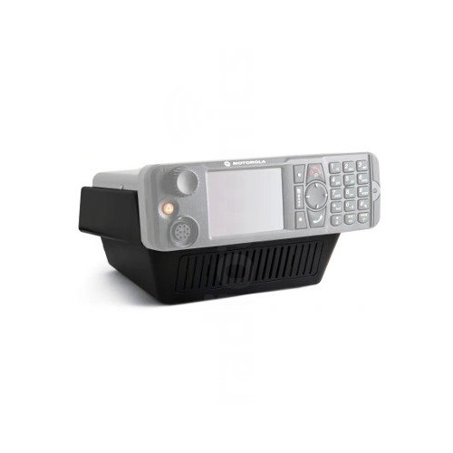 The Motorola GLN7318A (no speaker) is a simple desk stand that allows easy and ergonomic desk mounting of your Motorola CDM750 series, XPR4000 series or XPR5000 series mobile radio. Radio shown for illustrative purposes only and is not included.